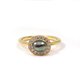 The lustrous yellow gold band connects seamlessly to the setting, creating a smooth and elegant silhouette.
