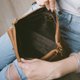 Vintage hardware, paired with neat, uniform stitching, lending a touch of artistic flair.