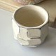 A custom-blended beige slip is applied to the cleanly cut ceramic body, revealing a refined, angular beauty.