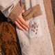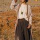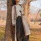 - The light apricot robe meets the brown collar and cuffs, like morning mist kissing twilight, creating a serene backdrop. The open-front design allows the lapels to drape naturally, with lines as relaxed as a flowing stream. The small white floral embroidery on the shoulders and pockets, each a randomly placed surprise—which little flower in the world's garden is yours? 15% Linen + 85% Cotton