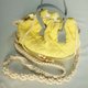A cute handmade small drawstring bag made of soft quilted fabric with a color-contrast handle.