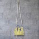 - A soft and cozy quilted drawstring shoulder bag. Small in size, it fits your smartphone and wallet. Equipped with an adjustable macramé shoulder strap, a short handle, and a secure connecting tag, it can be used three ways: handheld, over the shoulder, or with the strap detached as a smartphone shoulder bag. Very lightweight, perfect for everyday use.