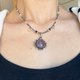 - Ruby Glass Seed Bead x Natural Stone Beaded Pendant with Clavicle Chain