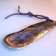 - A shoehorn crafted from pure titanium, featuring a hammered finish.
