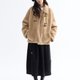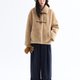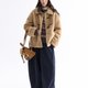 - Lapel lamb wool coat, the short silhouette is cut with precise proportions to create clean lines, balancing the volume of the upper body with the lower body's silhouette. The double pocket design on the front serves both practical and aesthetic functions, adding convenience for storage and providing warmth for hands in the cold. The milk tea color is warm and soft, exuding an approachable and cozy ambiance, while the ebony brown is retro and profound, with each color offering its own unique charm.