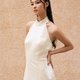 Our halter draped back qipao gown is a great choice for evening parties. Made from stunning sequinned fabric, it has a beautiful draped open back and a floor sweeping design. Match with metallic accessories to complete your look.