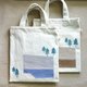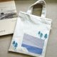 Summer hand-printed series | Gray blue | Small pocket cloth book bag