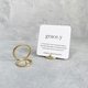 This is a stand for shop cards and business cards, made from a brass ring and brass beads, each with a unique shape.