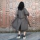 - Oatmeal Blue Tweed Wool Long Coat, Relaxed Fit