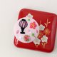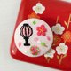 This is a brooch embroidered with bonbori lanterns, peach blossoms, temari balls, and hina-arare, all symbols of the Hinamatsuri festival.