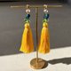 Deep emerald blue beads are paired with fresh green beads, and finished with yellow tassels to express the gentle light and warmth of winter sweet blossoms.