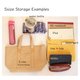 Fits daily essentials such as a wallet, handkerchief, tissues, and a makeup pouch.