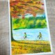 - A warm autumn watercolor showing two children cycling by a lakeside. Soft light, rich seasonal colors, and gentle brushstrokes evoke freedom, companionship, and a calm, nostalgic mood.