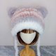 Hand-crocheted with incredibly soft faux mink fur yarn, this adorable bear-ear beanie.