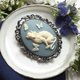 This brooch features a 40×30mm resin cameo.