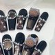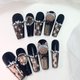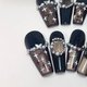 - These are cute wearable nails with a matte black base, subtly hinting at a touch of nighttime allure. Soft gloss pairs with three-dimensional floral, pearl, and delicate metallic accents, creating a look that is neither overly sweet nor flashy, growing more captivating the longer you admire them. Handmade, each nail possesses its own unique expression, like a quiet little companion accompanying you through the night, gentle and holding a hint of mystery.