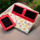 A floral-print sheepskin cardholder wallet. Designed with a detachable chain for your credit cards, connected to the wallet.