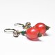 - Pierced Earrings with Vermilion Ethiopian Cherries, Malachite, and Ethnic Bells