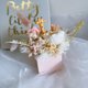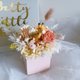 Soft pink roses and gentle dried flowers, paired with colorful details,