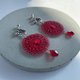 - Red earrings, perfect for adding a pop of color to your outfit, featuring a beautiful, delicate lace pattern. Crafted using the Nhanduti technique.
