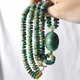 The designer has hand-ground the turquoise into **freeform flat slices and large tumbled stones**, crafting a **two-layer** short necklace.