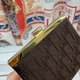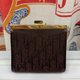 An elegant Christian Dior Oblique coin pouch, crafted from classic brown canvas adorned with the iconic Dior pattern, offering a timeless and enduring aesthetic. The frame features a shiny gold-tone clasp, adding a touch of sophistication and securely fastening the contents within. The interior is lined with leather that complements the exterior, showcasing the craftsmanship of a premium product. Beyond holding coins, it can also serve as a jewelry case for storing small items like earrings and rings.