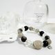 This grey-white phantom crystal is about the same size as the beads, with a low-key yet attractive grey, black, and white color palette, perfect for daily wear.
