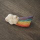 - Wooden carving brooch/badge with rainbow shape and retro cute building block toy feel. Uniquely handcrafted.