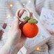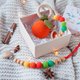 **Baby gift set included: orange (mandarine, tangerine) baby rattle, teething ring, pacifier clip holder + box**