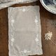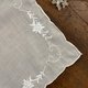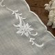 - The elegant French antique hand-embroidered tablecloth shows the delicacy and elegance of French embroidery technology. Made of light and delicate pure cotton tulle, surrounded by handmade floral embroidery, the pattern is elegant and smooth, and the edges are finished with exquisite wavy cutting, presenting a soft and delicate French country style.