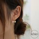 - These 18k yellow gold earrings feature bi-colored Akoya pearls that cast a delicate shimmer. The three-dimensional design gently embraces the earlobe, creating a look that is both elegant and modern. The soft luster, unique to natural saltwater pearls, is truly captivating. Shipped directly from Japan.