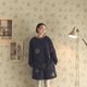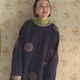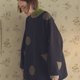 - Thick quilted navy fabric is accented with grey ribbing on the cuffs and collar, echoing the printed pattern on the garment. The placement of polka dots and triangles will vary on each piece.