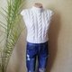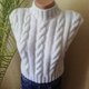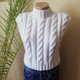 - เสื้อกั๊กแบบสั้นทันสมัยพร้อมคอตั้งสูง ฉันกำลังถักเสื้อกั๊กแบบถักเปีย เบาและอบอุ่น หุ่นไซส์ M.