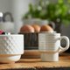 This coffee mug with its characteristic relief pattern is part of the Coffee & More series created by Sagaform in collaboration with designer Margot Barolo. The design is a flirtation with the direct, playful, straight-talking language of the 1970s. The series comprises various pieces, patterns and colours and looks at its best in a wonderful mixture of everything. Microwave and dishwasher safe.
