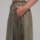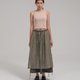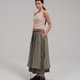 - Midi-length skirt with an overlayer panel for creative styling