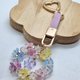- Leather Double-Snap Keychain with Colorful Glazed Cherry Blossoms and Austrian Crystals, Packaged in a Clear Zipper Pouch