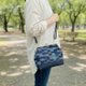 Made from denim, canvas, and cotton lining, it is lightweight (approx. 180g including strap)