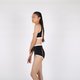 ชุดว่ายน้ำ Two-piece เสื้อแขนกุดครอปที่มีดีเทลตะข่าย และฟองน้ำในตัว ท่อนล่างเป็นกางเกงเอวสูง ที่มีดีเทลตะข่ายเข้ากับท่อนบน ด้านหลังท่อนบนมีดีเทลตะขอตัวล๊อคโลโก้ของแบรนด์ ง่ายต่อการสวมใส่