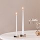 The Reflect candle holder has a minimalistic, timeless design and a unique geometric shape. The candle holder plays with reflections and light creating a visually intriguing scene in the room. With the Reflect candle holder you can choose between a small or large edition and between the colors; chrome, black chrome and rose gold. We encourage you to mix and match colors and sizes and to constantly explore new decorative arrangements in your home.