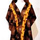 The tortoise shell has long symbolized good fortune and longevity. Adorned with red tiger's eye, known for warding off evil, attracting wealth, and averting misfortune, and accented with golden, transparent ingot charms at each end, this piece embodies blessings for health, longevity, and a life of abundance and fulfillment. Swarovski iridescent UFO crystals are scattered across the scarf, catching the light and shimmering with every movement.