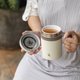 - Includes a dedicated tea infuser, with an inner lining crafted from hard white porcelain. This material resists lingering odors and ensures no chemical reactions with your beverages, making it suitable for coffee, tea, or even herbal infusions. It also maintains temperature, keeping drinks hot or cold for approximately 3 to 5 hours. The sophisticated matte finish offers an elegant and refined aesthetic, presenting an ideal choice for those prioritizing wellness.