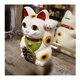 Raised Paw: A Maneki-neko raising its left paw symbolizes attracting popularity, relationships, and welcoming crowds, signifying broad connections and abundant customers, leading to prosperous business.
