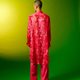 The "Wandering Celestial" series centers its design around prints inspired by Taiwanese folk open-air theater backdrops. These stage backgrounds commonly feature elements like landscapes, clouds, mist, or traditional Chinese palace architecture. One particular print transforms these elements, incorporating folkloric fairies and lotus flowers, blended with sunset-like hues. It reinterprets the backdrop style with a more contemporary approach, rooted in folk tradition.