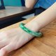 - [Name] Floating Yang Green Jadeite Round Bone Bangle Bracelet [Size] Circumference 18.5 (Inner Diameter 56.9mm, Width 9.9mm, Thickness 9.7mm) [Origin] Myanmar [Color] White, Green [Notes] Natural Burmese Jadeite Grade A [Item Number] Yingluo Bracelet 0548