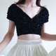 - เสื้อครอปปักลูกปัดกำมะหยี่สีดำสไตล์วินเทจ เสื้อครอปสำหรับใส่ไปงานราตรี