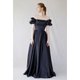 - Puff Sleeve Black Satin Plus Size Dress