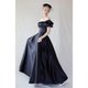 A classic dress is made from luxurious black satin with an elegant sheen.