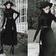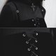 - Adjustable metal buckle velvet shoulder straps. Metal ring embellishments, crisscross gothic lacing. A sensual and elegant dress with a double-slit hem. Crafted from 270g heavy-weight velvet fabric with a slight stretch and beautiful drape.