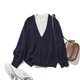 Cozy Warmth. Shetland Wool Oversized V-Neck Sweater in Navy 251105-1