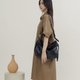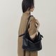 Details like the padded ring handle and the soft, voluminous body complement each other, with the handle also serving to secure the strap, adding a highlight to the overall look.